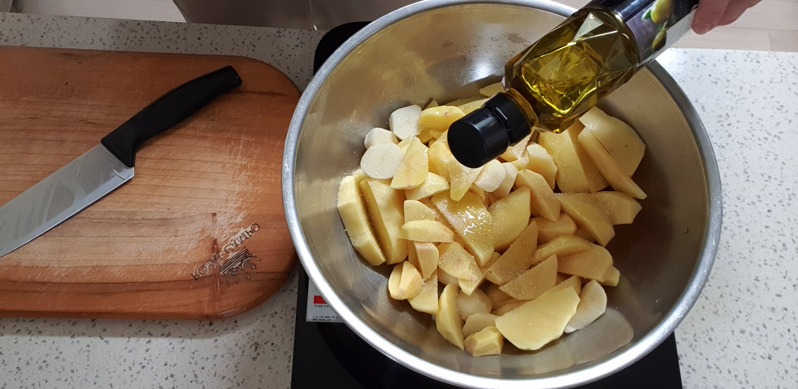 아이들이 좋아하는 메뉴이고 잘 먹는 간식 웨지감자를 버터를 사용하지 않고 올리브유를 이용하여 만든 방법이 맛있어서 소개합니다.
