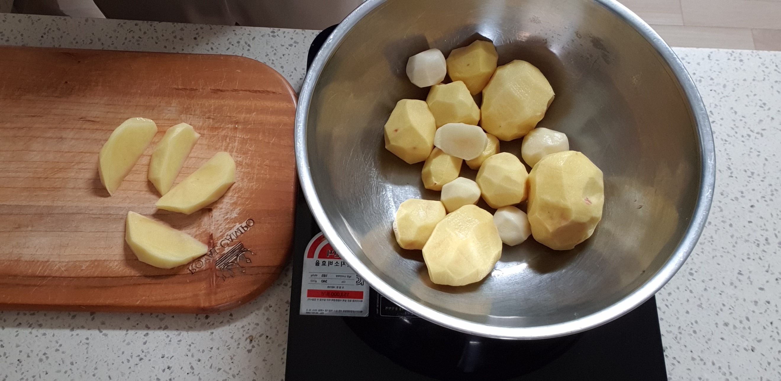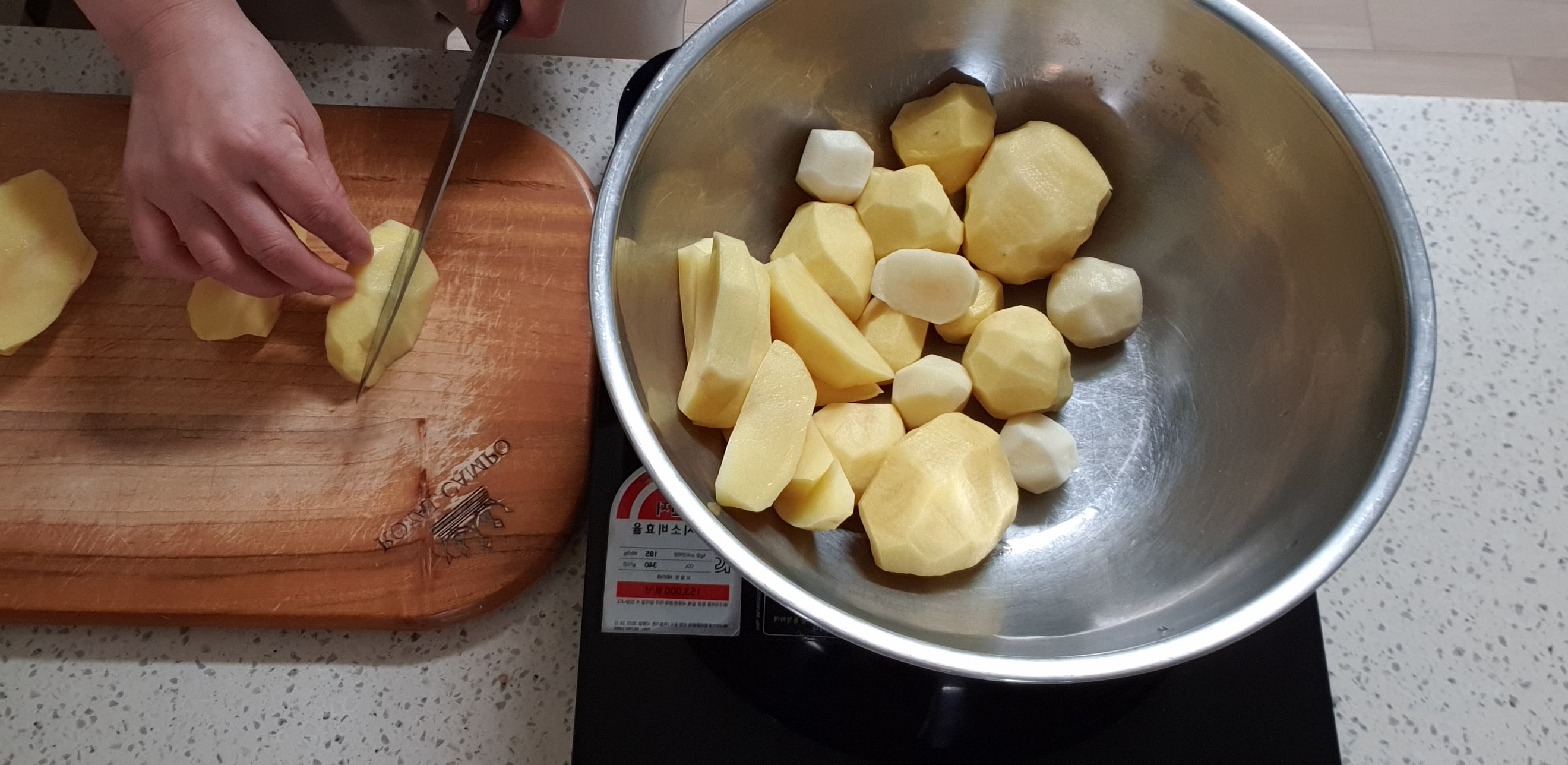 이 감자는 조금 큰 것이라 8등분으로 잘라볼게요.