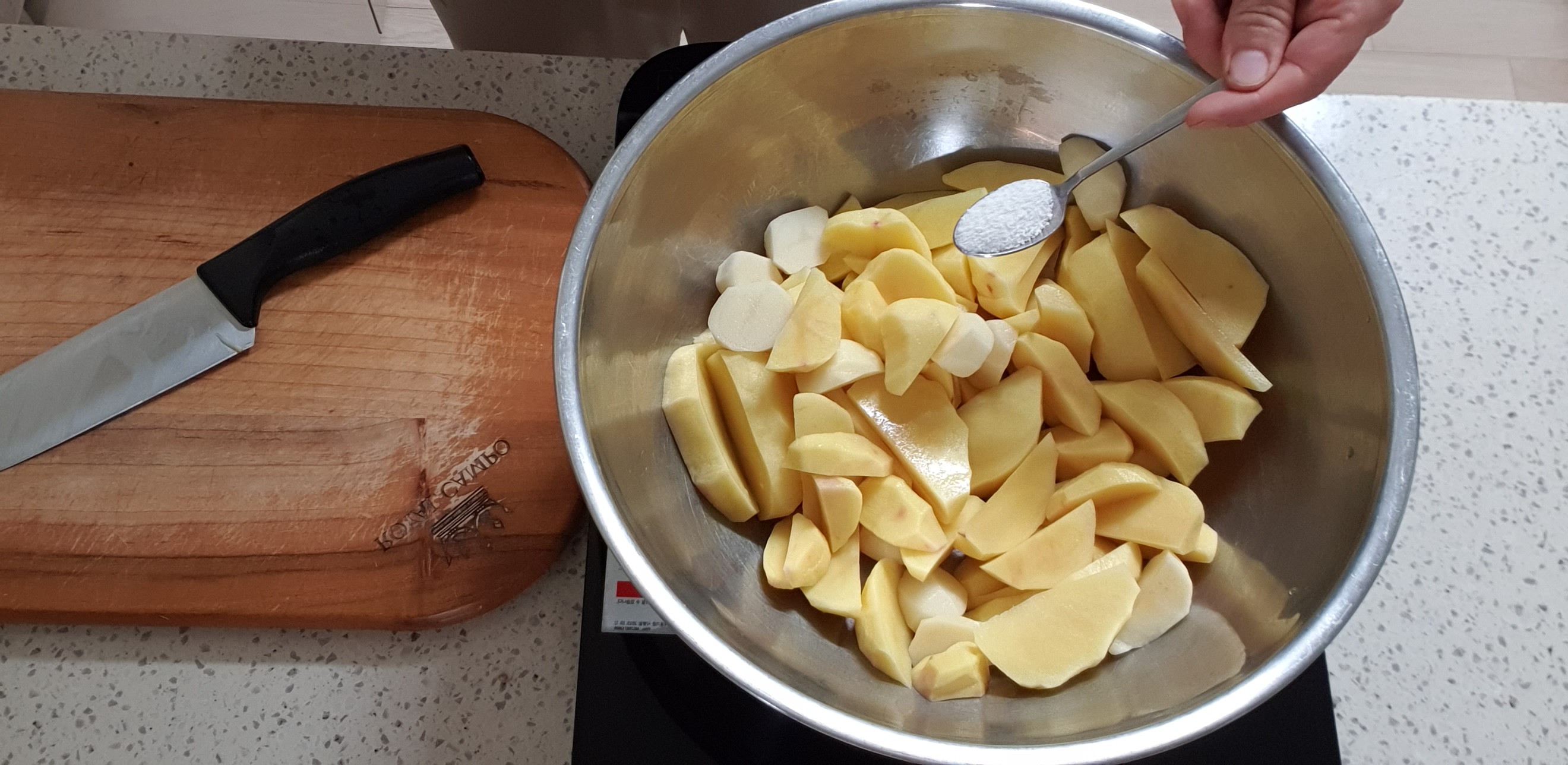 감자를 계량하지 않아서 정확한 소금 양을 표현하기가 어렵네요.