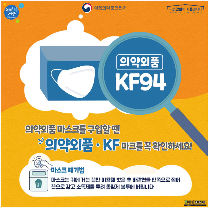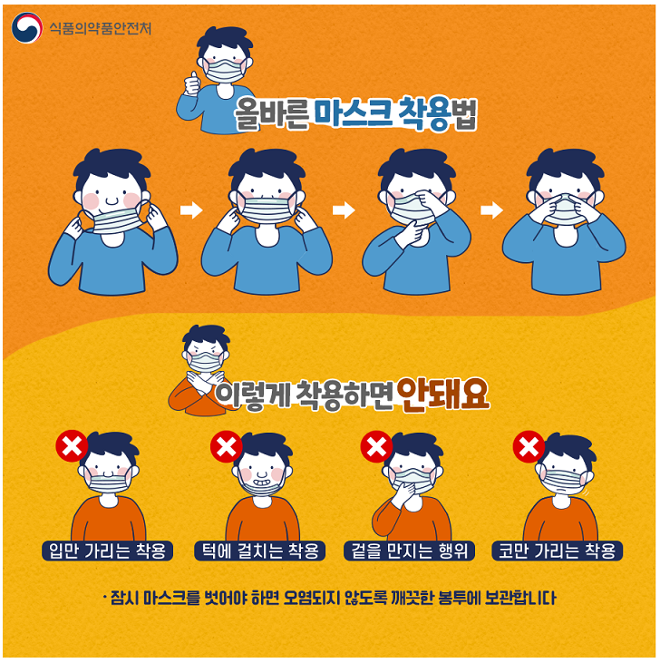다들 잘알고 계시겠지만 다시 한번 점검하는 차원에서 식품의약품 안전처에서 발표한 마스크 구매 시 꼭 확인할 사항과 마스크 사용법 그리고 마스크를 안전하게 버리는 방법에 대해 알아보겠습니다.